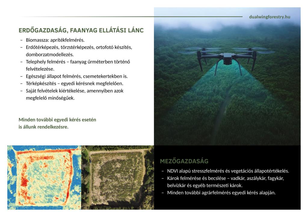 - Erdőtérképezés, törzstérképezés, ortofotó készítés, domborzatmodellezés.